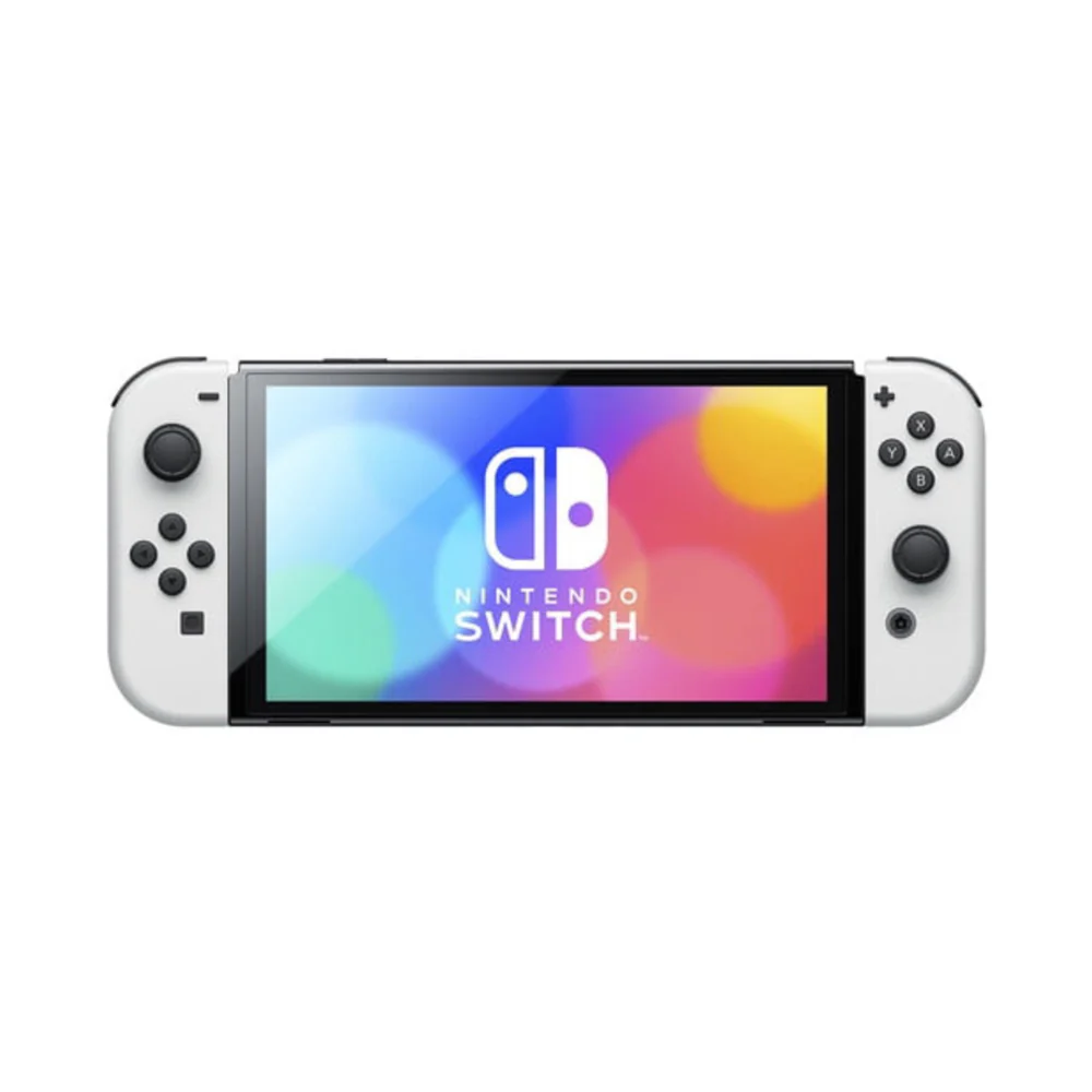 The Nintendo Switch OLED Console in White includes the upgraded OLED screen for enhanced visuals and handheld gaming experience. Bundled with Minecraft, it offers versatile gameplay whether docked or in handheld mode.